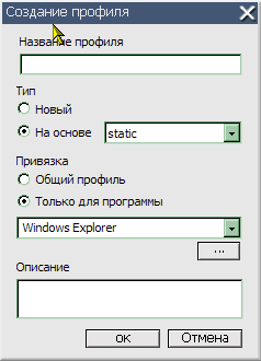 Такое окно появляется при нажатии на кнопку «Создать». С названием все понятно, «Тип» позволяет выбрать — будет профиль создаваться с нуля или на базе одного из существующих (полезно, если есть пересекающиеся настройки), а «Привязка» — сделать данный профиль глобальным, либо работающим с одной определенной программой. Удобно? Разумеется! И еще одна удобная возможность, ранее как-то не встречавшаяся в штатном клавиатурном ПО, — профиль можно сохранить в файл. Таким образом, настройку не придется проводить с нуля при установке системы, а также появляется возможность легко переносить свои настройки между разными компьютерами (при условии, что они снабжены одинаковыми или сходными клавиатурами).