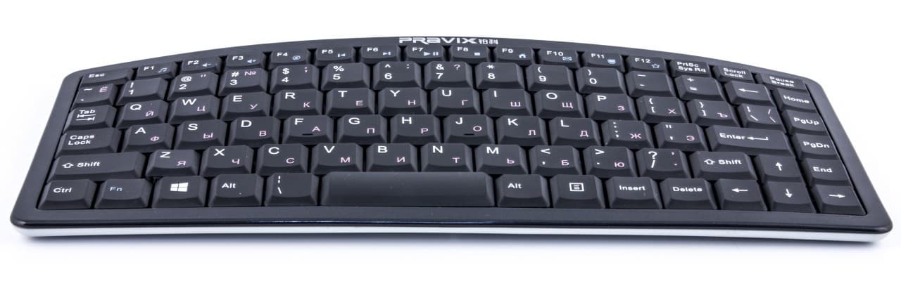 Все клавиатуры Pravix, попавшие к нам на тестирование, выполнены в компактном форм-факторе. Компьютерная W6016RF выделяется изогнутой формой верхней части. К нижней грани манипулятор выпрямляется.