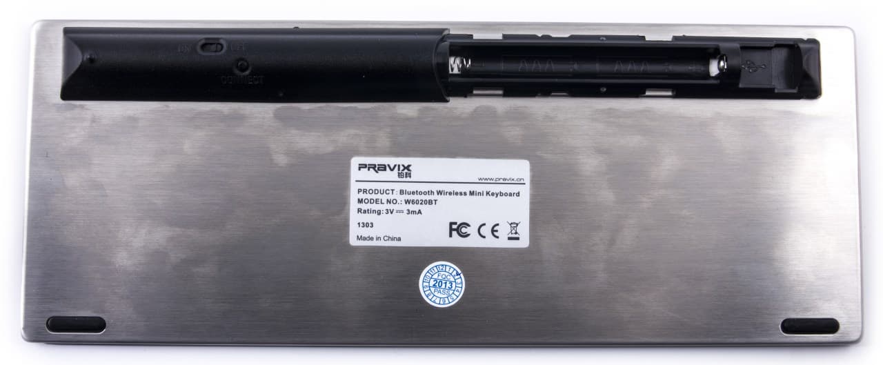 Рамка опирается на пластмассовый отсек для батареек. Рядом с ним находится выключатель клавиатуры и кнопка Connect.