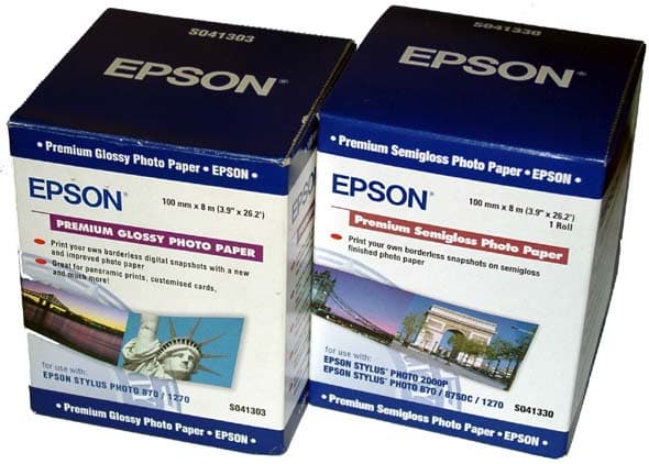 Новинка от фирмы Epson, бумага марки Premium Photo Paper, способна конкурировать по качеству с лучшими фотобумагами. Выпускаются 2 варианта этой бумаги: глянцевая (S041303) и полуглянцевая (S041330). Мне удалось купить ее в рулонном исполнении шириной 10 см и длиной 8 м.