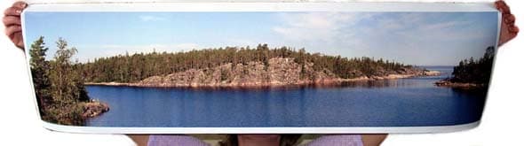 Если вы добрались до этой главы, то, вероятно, уже ознакомились с тем, как мы сшивали отпечатки, и с тем, что мы привезли из нашей беломорской экспедиции. Демонстрировать панорамы на экране — не самое выигрышное занятие, поскольку хочется продемонстрировать сразу все, но с различимыми мелкими деталями. Экран позволяет увидеть или все мелко, или крупно, но по частям. Лист бумаги тоже имеет сложившиеся пропорции. Я понимаю, золотое сечение (отношение сторон 1,618 или 0,618) — это идеальный формат, но не для панорам. Поэтому я приступил к поискам материала, на котором можно крупно и выигрышно продемонстрировать снятые нами пейзажи. Фирма Epson выпускает специальную панорамную бумагу (два листа А4, соединенных узкой стороной — S041145), но, как назло, в нужный момент ее в продаже не оказалось, и пришлось искать альтернативные решения. Поход по магазинам выявил наличие двух подходящих материалов: очень длинного (8 м), но узкого (10 см), с прекрасным качеством и стойкостью, но не для любого принтера. И очень широкого (42 см) и достаточно длинного (3м), и снова не для любого принтера. Поскольку принтер в моих экспериментах был величиной, заранее заданной и постоянной (Epson Stylus Photo EX = const), то пришлось приспосабливаться. Ну, ломать не строить, решаю, что из широкого рулона я как-нибудь узкий сделаю, а возможно, даже два, и покупаю Artist material for color Ink jet printing S041132. Звучит заманчиво и не очень понятно. Художники малевали свои картины на самых разных материалах. Проще, наверное, сказать, на чем не рисовали. Но все же интересно, с чего Epson начал освоение художественных материалов. Пока иду из магазина домой, в уме перебираю: скалы, папирус, дерево, шелк, сухая штукатурка, холст. Вскрываю упаковку, и действительно угадал: холст — это, пожалуй, самый популярный у художников материал.