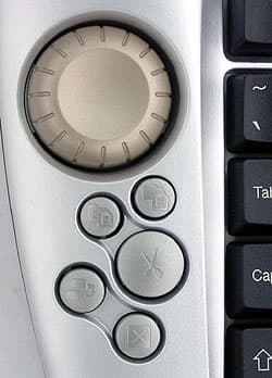Теперь внимательно посмотрим на группу кнопок слева. Три верхних являются клавишами редактирования (Copy, Paste и Cut), две нижних управляют приложениями: одна переключает окна подобно Alt-Tab, вторая закрывает текущее приложение. В кнопках легко разобраться на ощупь, благо хорошим ориентиром является увеличенная Cut, работают они, обходясь стандартным клавиатурным драйвером Windows. Единственное, что кажется мне не совсем правильным кнопку Close все же стоило расположить в ином месте: рядом с часто используемыми кнопками редактирования, она способна привести к проблемам при случайном нажатии (мне кажется, что не стоило смешивать в одной панели столь разнотипные органы управления, к тому же, когда часть из них обладает большой «разрушительной силой). А расположенный чуть выше вращающийся регулятор это ничто иное, как скроллер. За него конструкторов можно только похвалить такая форма для клавиатуры заметно удобнее, нежели перенесенные с мышей вертикальные колесики: на мыши палец легко ложится на колесико, на клавиатуре же постановка рук несколько иная, так что применение «стандартного» скроллера требует ее менять, а данная конструкция нет. Скроллер может не только вращаться, но и нажиматься, т.е. по функциональности полностью соответствует вертикальным колесикам иных клавиатур. К сожалению, работает он только при установленном дополнительном ПО, а нажатие вообще никак не переопределяется, причем стандартное его назначение (о котором было сказано в статье по D-Computer EZ-7000), как выяснилось, конфликтует с мышью.