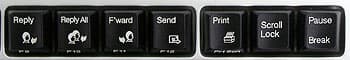 Следом располагаются пять кнопок, по-умолчанию, предназначенных для запуска различных приложений MS Office: Word, Excel, PowerPoint, Calendar и стандартный калькулятор Windows. Без установки ПО или других действий они ничего не делают, однако их вполне можно «привязать» к каким-либо приложениям самостоятельно. Дело в том, что, подобно похожим кнопкам WK-8000, при нажатии они посылают совершенно стандартные коды, соответствующие нажатию комбинаций Ctrl-Alt-W, Ctrl-Alt-E, Ctrl-Alt-P, Ctrl-Alt-O и Ctrl-Alt-C, соответственно, а запускать программы по горячим клавишам Windows умеет самостоятельно.
