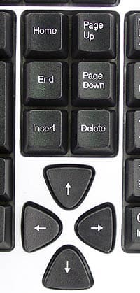 Как и следовало ожидать, перед нами классическая мембранная клавиатура с обычным ходом клавиш, достаточно мягкая и очень тихая (особенно по сравнению со старшими моделями CyMotion). Основной блок имеет стандартную раскладку с большой L-образной клавишей Enter. Побочным эффектом в данном случае является расположение клавиши «|» правее RShift с соответствующим уменьшением длины последней (иначе пришлось бы уменьшать BackSpace, что менее удобно). Зато LShift имеет стандартные размеры, что в последнее время встречается, к сожалению, все реже и реже.