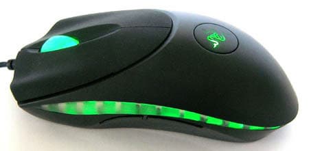 Боковые накладки, логотип на спинке и колесо подсвечены изумрудно-зелёным светом, называется по терминологии производителя этот оттенок Chaos Green. На выбор есть Anarchy Red и Tempest Blue. В смысле не в одной мыши по очереди, выбор надо делать при покупке.