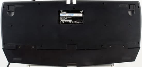 Цвет полностью чёрный. Подставка для запястий из матового пластика, можно отсоединить, крепление на саморезы. Пространство вокруг клавиш из глянцевого плексигласа естественно, быстро пачкается, но, будучи чистым, смотрится отменно. Клавиши, как и кнопки мышей от этой фирмы покрыты похожим на резину материалом. На нижней поверхности — шесть резиновых полосок, которые прочно фиксируют клавиатуру на столе. В дальней части — пара ножек, приподнимающих её примерно на 15 мм.