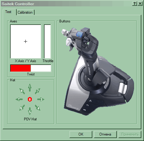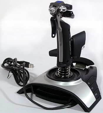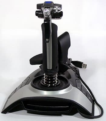 Впрочем, даже если бы не способность точно подгоняться под руку владельца, все равно был бы данный джойстик одним из лучших продуктов конца уходящего года (вполне возможно, что и немалой части следующего), поскольку единственное, чего ему, может быть, не хватает, это обратной связи. Да и то очень многие считают, что для джойстиков, в отличие от рулей, эта функция все равно особо не нужна. Остальное же, что способны предоставить современные технологии, в наличии. Джойстик четырехосевой: две «стандартных», поворот рукоятки вокруг своей оси (rudder; handle twist термин пока не устоялся), отдельный аналоговый регулятор газа (throttle). Для переключения видов (или что там вам в голову придет) используется восьмипозиционный hat, а для всех остальных операций целых 12 кнопок, половина из которых расположена на самой рукоятке в зоне доступа пальцев рабочей руки, а остальные на основании. В общем, полный набор, необходимый и достаточный для управления любой игрой, в которой вам вам вообще придет в голову использовать именно джойстик. В основном, конечно, речь идет об авиасимуляторах, где первая ось джойстика отвечает за руль высота, вторая управляет элеронами, поворот рукоятки рулем поворота, ну а trottle двигателем.