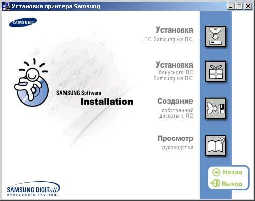 Установка драйверов и ПО для остальных операционных систем семейства Windows отличается немногим. Особенно хотелось бы подчеркнуть возможность инсталляции принтера на ПК без привода CD-ROM: в таком случае достаточно вставить прилагаемый диск в другой компьютер, оборудованный CD-ROM приводом и просто создать комплект специальных установочных дискет. При этом меню позволяет выбрать интересующие пользователя приложения драйвер PCL, драйвер USB, утилиту DOS RCP или все вместе. После выбора необходимых компонентов, на дискеты (или дискету) переносится искомое. Далее процедура продолжается после запуска файла setup.exe с первой дискеты.