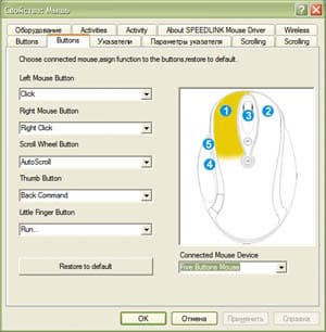 Оставил по себе те же странные ощущения deja vu. На сей раз с IntelliPoint. Поскольку они оба были у меня установлены в системе, то отличия в закладках выявились в основном в шрифтах и несколько местами пониженной функциональности версии от Speed-Link. А местами повышенной, причём серьёзно. За отсутствие специфичных для разных программ настроек мы получаем взамен мощный редактор макросов, поддерживающий в качестве модификатора даже и Win-клавишу. Правда, задержку между исполнением частей макроса он не поддерживает. Сделать скриншот этого окна не удалось, т.к. программа перехватывает все нажатия на клавиши. Можно назначить также клавиши из стандартного набора для HID-устройств и другие команды, а ещё запуск произвольного файла. Так что с настройками всё отлично, только вот что настраивать не ясно, остаётся всего одна, максимум две кнопки для этих целей.