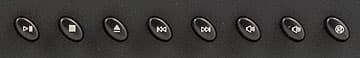 Далее помещены восемь медийных кнопок — такие же по форме, как предыдущие, но наклоненные влево. Первые пять работают с плеерами, последние три — с громкостью. Ни одной упущенной функции. Необходимости в дополнительном программном обеспечении нет. Если, конечно, вы используете Windows Media Player или другой проигрыватель со стандартной схемой управления. В случае всяких альтернативных поделок часть кнопок управления плеером вполне может не работать. Могут и все.