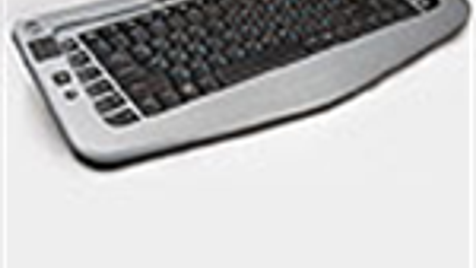 На левом же симметрично этой паре расположилась еще одна. Нижняя кнопка вызывает стандартный «Калькулятор», а вот верхняя куда интереснее — это уже пятая (наряду с тремя стандартными и описанным выше Fn) клавиша-модификатор. По-умолчанию отключена, но если ее нажать, то первые девять функциональных клавиш получат назначение, пригодное для работы с оболочкой Windows XP MCE или Vista: «Фонотека», «Видеотека», «ТВ-записи», «Галерея», меню DVD-диска, программы телепередач, просмотр ТВ, запись ТВ, дополнительная информация. Думаю, подробно расписывать их назначение не имеет смысла — тем, кто уже пользуется медиацентром в Windows, все и так понятно, а остальным это все равно предстоит. Ранее мы конкретно с такой реализацией не сталкивались, однако ничего неожиданного в ней нет — на многих клавиатурах офисного назначения хорошей традицией стало наличие клавиши F-Lock, включающей «офисный» режим использования функциональных клавиш (например, это реализовано в недавно изученной компактной клавиатуре Oklick 555S). 9004 же однозначно «просится» не на стол к офисной «печатной машинке», а к НТРС, почему и назначение кнопок другое. Но идея — та же: все равно современным программным обеспечением (за исключением, разве что, файловых менеджеров) функциональные клавиши так, как это было задумано 30 лет назад, не используются, так зачем же добру пропадать?