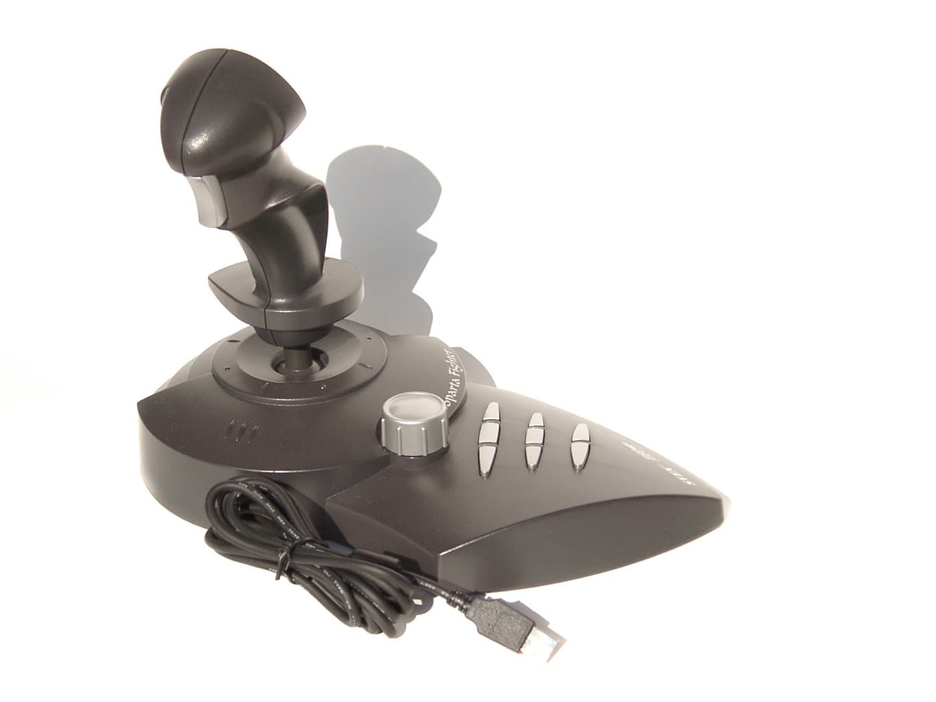 Эргономический дизайн рукоятки QF-707U был бы достоин похвал, если бы не один существенный недостаток. Вместо округлых плавных форм в том месте, куда ложится ваша рука, имеют место достаточно острые, почти не скругленные углы. И если, играя, вы будете с усилием сжимать рукоятку, то это очень быстро вызовет раздражение руки. Других нареканий у меня не возникло. Все элементы управления расположены удобно и доступно. Ход основной кнопки составляет всего 2.0мм, что весьма кстати, если требуется высокая частота нажатий этой кнопки. Throttle, реализованный в виде небольшого движкового регулятора имеет рабочий ход равный 22 мм. В общем, если бы не угловатость рукоятки, то я смело рекомендовал бы эту модель. Хотя, если вы проводите за играми совсем немного времени, то можете обратить на нее свое внимание.