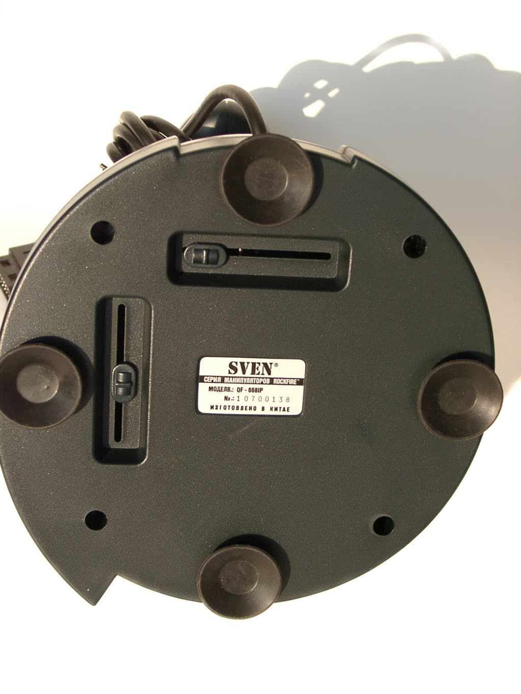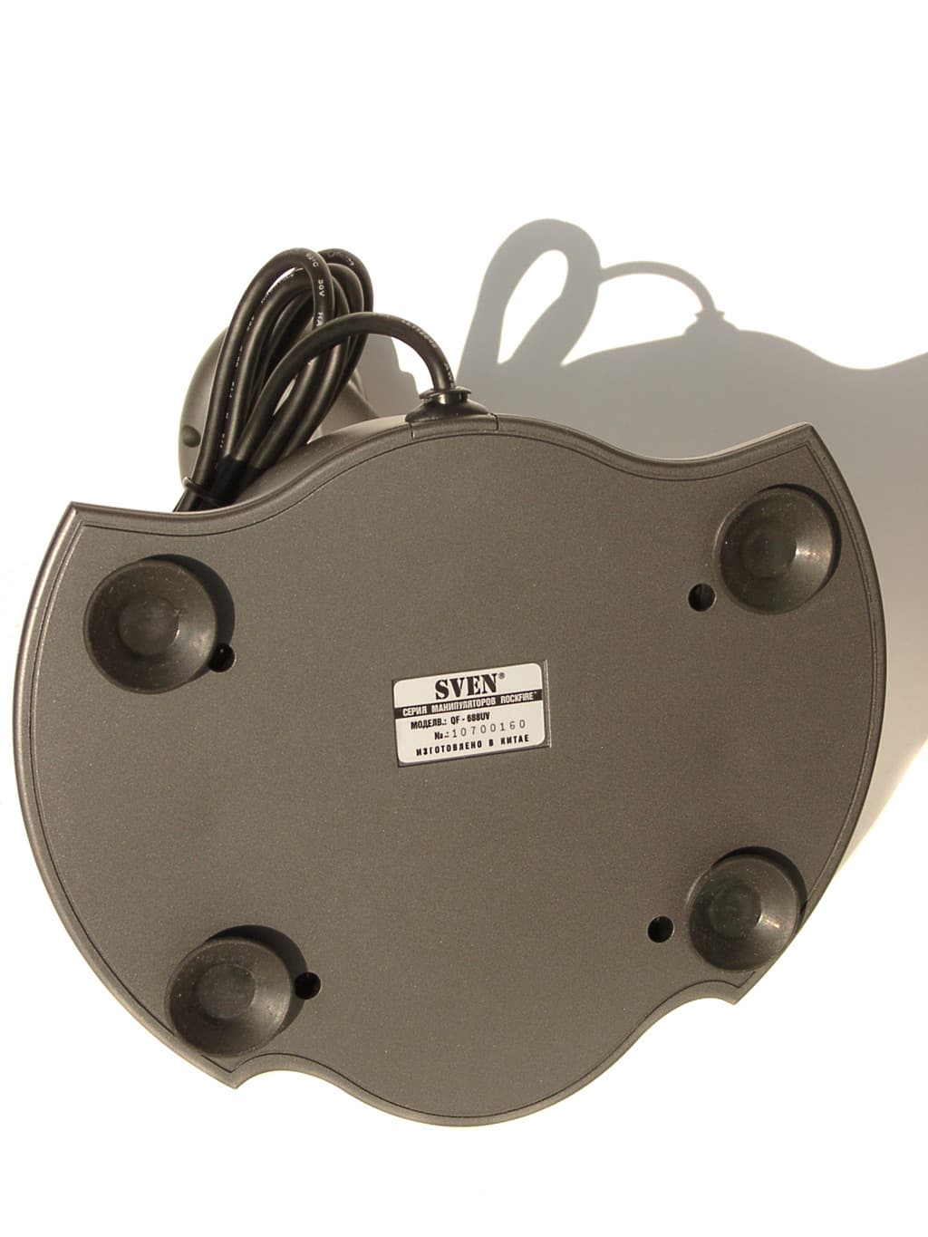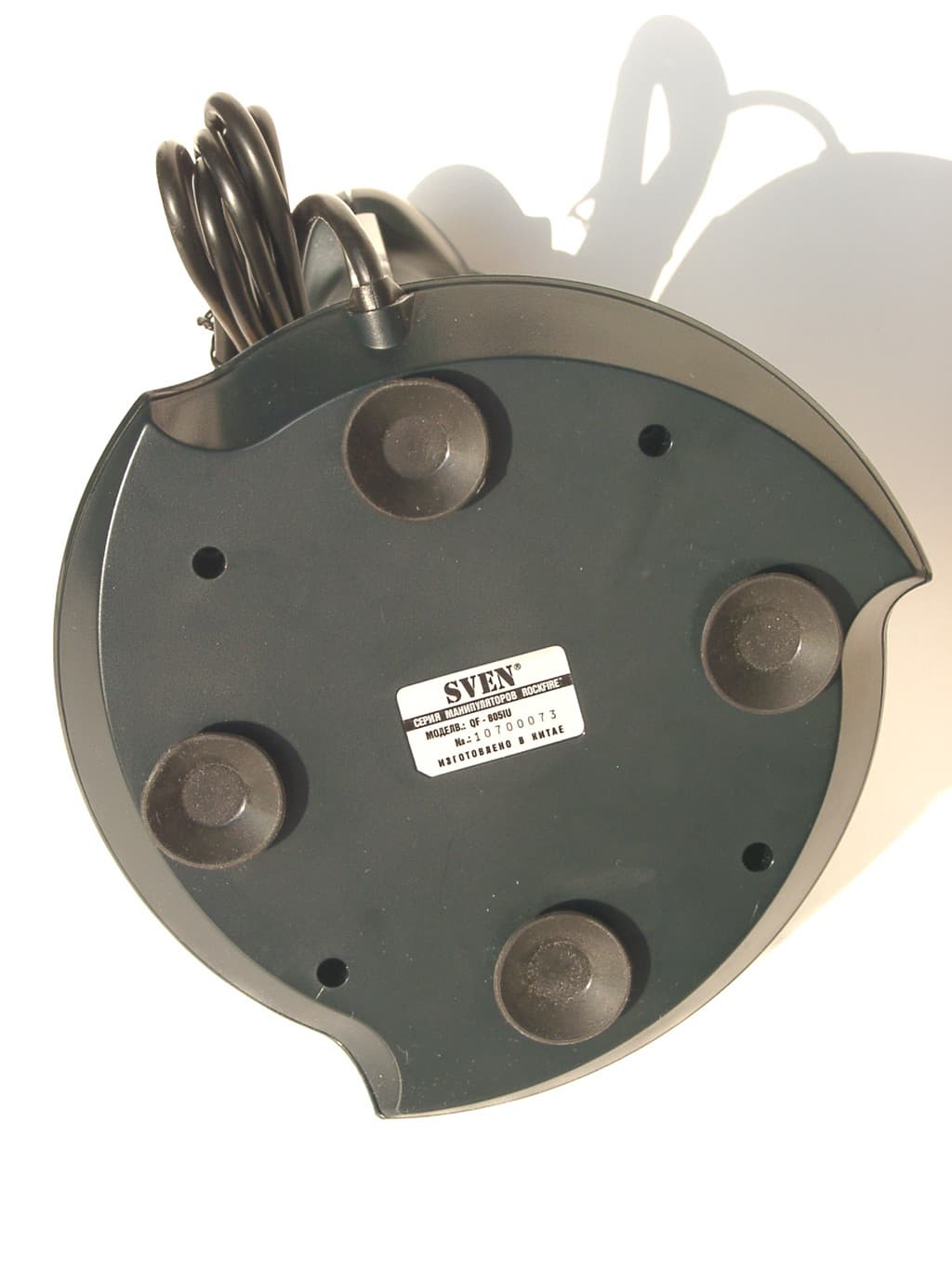 Как и модель QF-707U, Sparta Fighter опирается на рабочую поверхность круглыми резиновыми ножками. Никаких металлических брусков в основании его корпуса нет. Вместо них, для увеличения веса, нижняя крышка основания корпуса сделана цельнометаллической. Под этой крышкой расположена механическая часть джойстика, переменное сопротивление регулятора Throttle, и внушительных размеров печатная плата. Как я писал выше, Throttle имеет очень небольшой угол поворота, но эту проблему можно решить, так как ограничен он искусственно. Для этого придется разобрать основание корпуса джойстика и воспользоваться своими слесарными навыками. Если же таковых навыков у вас нет, то не рекомендую вам пытаться доработать конструкцию QF-8800U.