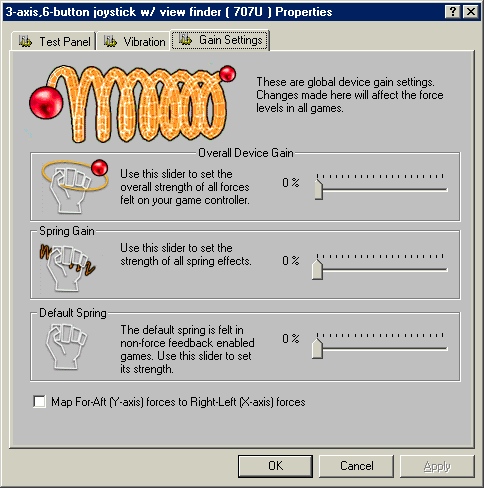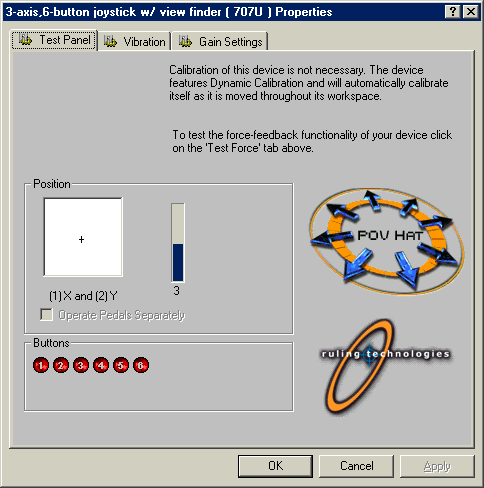 Процесс установки QF-707U прост и не вызовет никаких затруднений. В моем случае джойстик нормально инсталлировался и функционировал под управлением операционных систем Windows ME и Windows XP Professional. Правда, при настройке QF-707U в среде Windows ME меня удивило присутствие в свойствах этого игрового манипулятора закладок, касающихся обратной связи (см. выше копии экранов). В среде Windows XP Professional этого не наблюдалось, и, конечно же, никакой обратной связи в данной модели нет. Программное обеспечение GameWizard v2.1 я кратко опишу позже, так как оно поставляется не только с этим джойстиком, а описывать его несколько раз нет смысла.