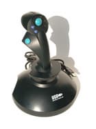 Рукоятка Windstorm Pro очень похожа на рукоятку моделей QF-805IU и QF-8800U, но все же несколько другая. Она несколько массивнее, и расположенные на ней кнопки сгруппированы иначе. Несмотря на это, все они, включая переключатель вида (POV), одинаково хорошо доступны, и во время игры никакого излишнего напряжения в руке не возникает. Форма самой рукоятки такова, что она очень удобно ложится в руку, и никакие острые углы вам не мешают (их попросту нет). Рабочий ход основной кнопки составляет 2.2 мм, а угол ее поворота вокруг своей оси 14 градусов. Несколько хуже дело обстоит с основанием корпуса. Колесико регулятора Throttle, подобно модели QF-805IU, расположено сзади от рукоятки. По обе стороны от этого колесика, вплотную к нему, располагаются и две функциональные кнопки. Такое их положение, как я уже писал, рассматривая модель QF-805IU, неудобно, так как при отклонении рукоятки назад доступ к колесику и кнопкам становится несколько затруднителен. Больше мне, в общем-то, нечего сказать об эргономике QF-688UV. Зато есть, что сказать о его обратной связи (Vibration Feedback). Она, безусловно, присутствует и ее можно ощутить, но не ждите ничего сверхмощного. Слабенький двигатель, установленный в рукоятке джойстика, не способен создать действительно сильные эффекты. Мощность вибрации мне лично чем-то напомнила вибрацию низкооборотных микродрелей для сверления печатных плат. Ну, может быть, не так плохо, но где-то рядом. Однако, кому-то вероятно понравится и такое. Все-таки это лучше, чем ничего, а прибавив сюда! прекрасную эргономику QF-688UV и его достаточную функциональную оснащенность, можно смело заявить, что это лучшая модель из рассмотренных в этом обзоре.
