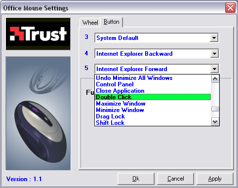 На второй назначить функции, осуществляемые при нажатии на колесо прокрутки и две боковые клавиши. Шестая (верхняя) кнопка «Office button» оказалась не программируемой. Более того, при нажатии на нее, согласно мануалу, должно появляться некое меню быстрого доступа с ярлыками приложений. Увы, это меню так и не появилось: вероятно, в текущей версии драйвера от него отказались. Вместо меню быстрого доступа появлялась контекстная менюшка; такая же, как появляется при нажатии на правую кнопку мыши.