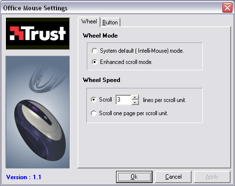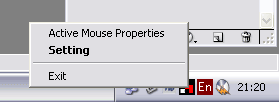 После инсталляции драйвера, в системном трее появляется ярлычок, с помощью которого мы можем добраться до стандартных настроек мыши Windows (пункт Active Mouse Propertis) и до опций, предлагаемых непосредственно программным обеспечением от Trust (пункт Setting). Программа настроек мыши Trust содержит всего две закладки.