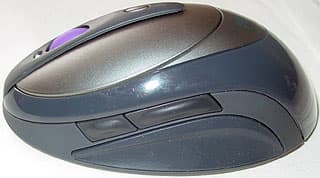 Честно говоря, форма мыши, на первый взгляд, меня не впечатлила. Эдакий правильный «бугорок» слегка деформированной, но почти идеально «полу-яйцеобразной» :) формы. Я предполагал, что данная мышь будет неудобна при перемещении, особенно во время игр, когда манипулятор необходимо будет приподнимать и быстро перемещать. Однако я ошибался первое впечатление оказалось обманчивым. Перемещать мышь, даже приподнимая ее, на практике оказалось довольно удобно благодаря резиновым вставкам по бокам, к тому же имеющим рельефную форму, манипулятор было легко захватывать и приподнимать с помощью большого пальца и мизинца. К счастью, мышь очень легка, что особенно ценно для беспроводного устройства. По сравнению с этой мышкой, скажем, модель Genius NetScroll+ Superior Wireless кажется просто гантелью (что, впрочем, вполне логично, хотя бы из-за того, что каждый применяемый в ней аккумулятор АА весит столько же, сколько пара ААА) :).