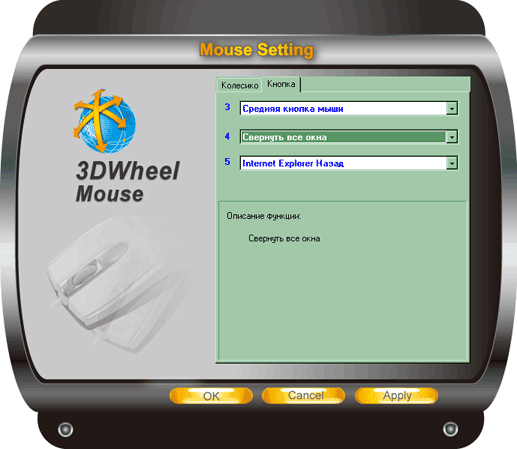 Настраивать можно нажатие на колесико и две боковые кнопки. Выбор осуществляется только из списка, включающего некоторое количество типовых действий, а также эмуляцию нажатия на функциональные клавиши клавиатуры. Макрокоманды или что-либо еще сложное (например, запуск любой программы по выбору пользователя) не поддерживаются.