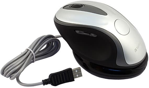 Материал корпуса — чистый пластик: не глянцевый, что плюс, но и даже на боковинах достаточно гладкий, что уже можно считать минусом. Форма — эргономичная под правую руку. Причем в первую очередь под большую руку. В последнюю сразу же ложится как надо, не в последнюю очередь благодаря углублениям под три пальца (особенно понравилось боковое под большой — благодаря широкому основанию, даже без приложения специальных усилий он оттуда выскользнуть вниз не пытается). Скроллер обрамлен широкой площадкой, где отлично размещается средний палец, не мешая указательному и безымянному оперировать основными кнопками. В общем, мышь как нельзя лучше подходит для жесткого хвата всей ладонью, так что пригодна даже для игр (чему не мешает и примененная электроника). Единственное, к чему возникли нарекания — к дизайну колесика прокрутки: во-первых, оно изготовлено из гладкой резины безо всяких насечек, так что может проскальзывать (особенно актуально для склонных к повышенному потоотделению), во-вторых, большая его часть скрыта в корпусе — как показывает практика, менее заглубленным колесиком пользоваться удобнее (особенно когда нужно много «прокручивать») нежели более заглубленным.