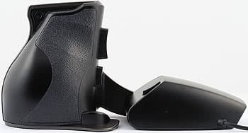 Предполагается движение для прицеливания не всей рукой из стороны в сторону, а поворотом кисти. При этом смещается передняя часть относительно вертикальной оси, проходящей через центр ручки. Производитель явно указывает, что правильно так и никак иначе. Хотя смещать от локтя весь манипулятор тоже удобно. А вот двигать взад-вперёд не очень. Но идея такая в вертикальном направлении прицеливаться конечно тоже надо, но основные перемещения происходят в горизонтальном. В самом деле, редко когда надо более 90° свободы по вертикали, а обычно и меньше. А вот по горизонтали 180° и так далее, до нескольких полных кругов персонажа вокруг своей оси. Так что такие ограничения удобства по одной плоскости за счёт другой можно считать концептуальными.