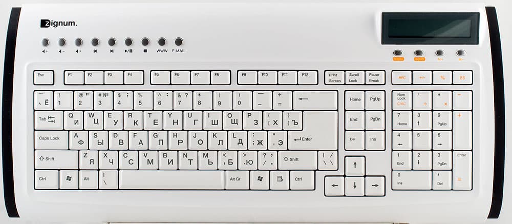 Интересный и редкий экземпляр клавиатуры оказался у меня в руках — продукция немецких дизайнеров, компании Zignum, которая занимается разработкой всевозможной компьютерной и мультимедийной периферии.