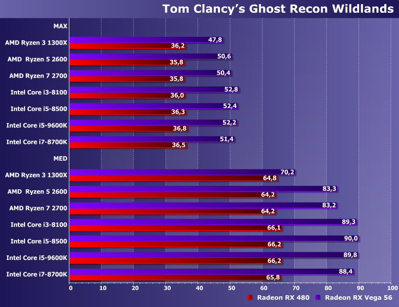Как мы уже не раз отмечали, игра к процессору очень требовательная... Однако более подробное знакомство с ее работой на разных процессорах заставляет задуматься, что не все так уж однозначно и в этом случае: если Vega 56 с Ryzen 3 1300X (из сегодняшних героев он самый медленный) выдает такую же частоту кадров «на максималках», что и RX 480 с любым процессором «на средних», то понятно — в чью пользу распределять бюджет при сборке / апгрейде игровой системы :)