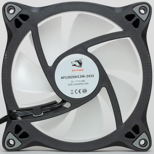 Крыльчатка вентилятора изготовлена из прозрачного пластика и снаружи слегка заматирована. Внутри на рамке есть кольцевая вставка из такого же материала. Видимо, есть модификация этого вентилятора, оснащенного светодиодной подсветкой. Вентилятор кулера имеет четырехконтактный разъем (общий, питание, датчик вращения и управление ШИМ) на конце кабеля. Кабель заключен в скользкую плетеную оболочку. В комплекте поставки есть еще две скобки для крепления вентилятора. Второй вентилятор можно установить с другой стороны радиатора для работы на выдув. Тем самым можно увеличить производительность кулера.