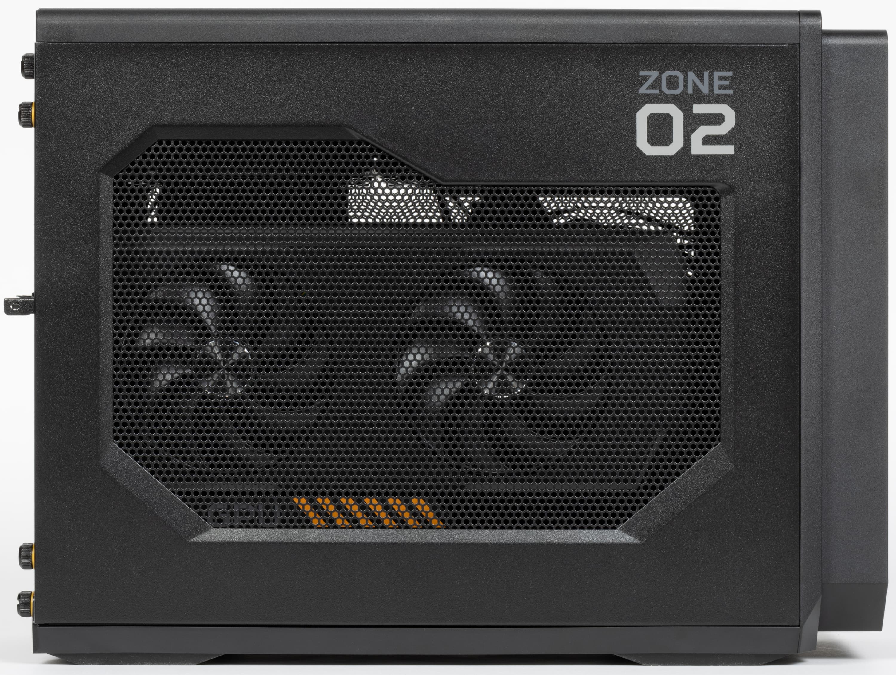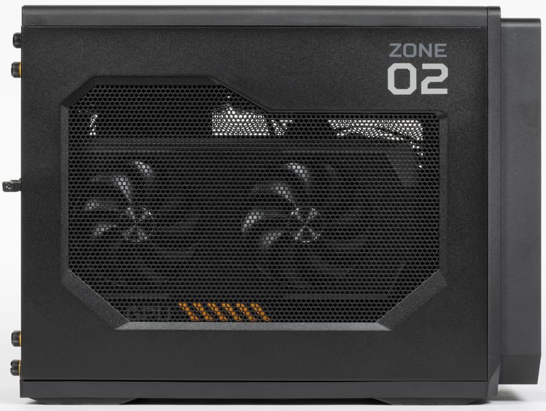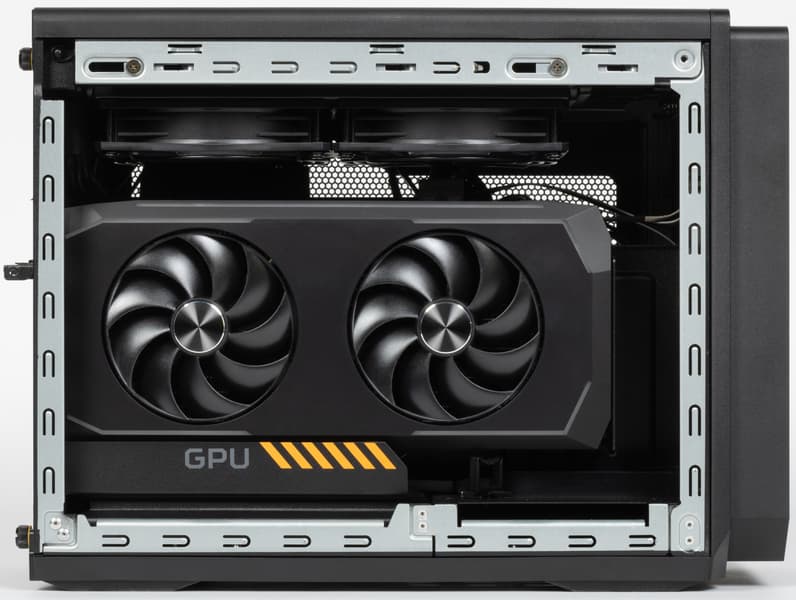 При этом разбиение на отдельные зоны полностью сохраняется. Видеокарта, например, забирает холодный воздух практически снаружи — через сетчатую боковую стенку.
