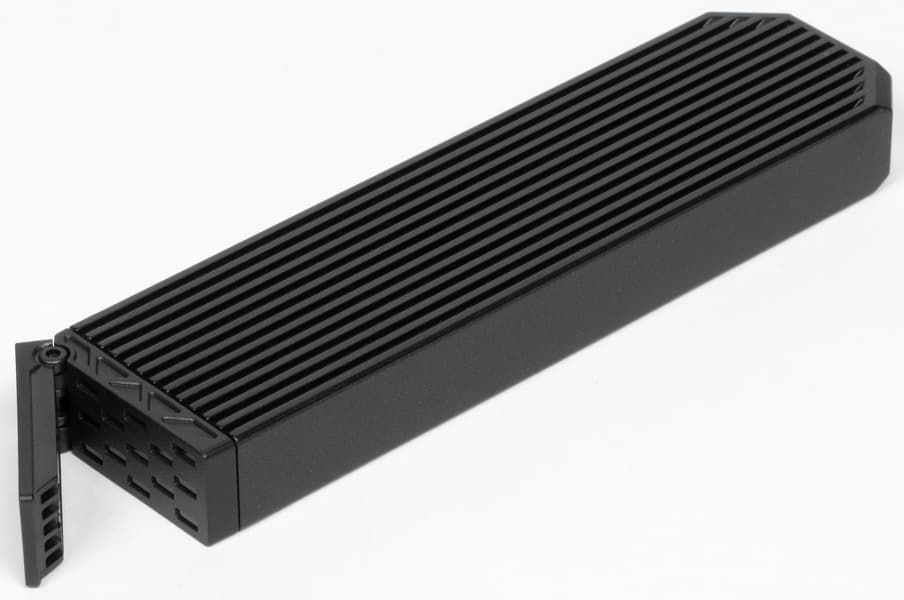 Реальная скорость порядка гигабайта в секунду пиетета уже не вызывает, однако с более быстрыми стандартами до сих пор не всегда всё просто (хотя бы в плане распространенности). Тут же есть по крайней мере удобный док — и коробок-боробок уже в комплекте, куда можно будет, например, позднее переставить штатный SSD, заменив его на что-то более емкое и быстрое.