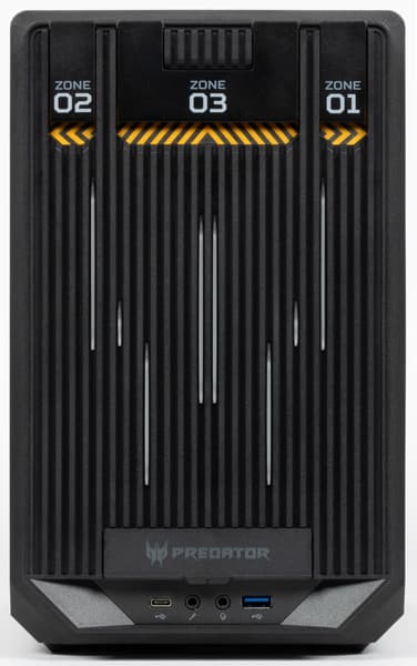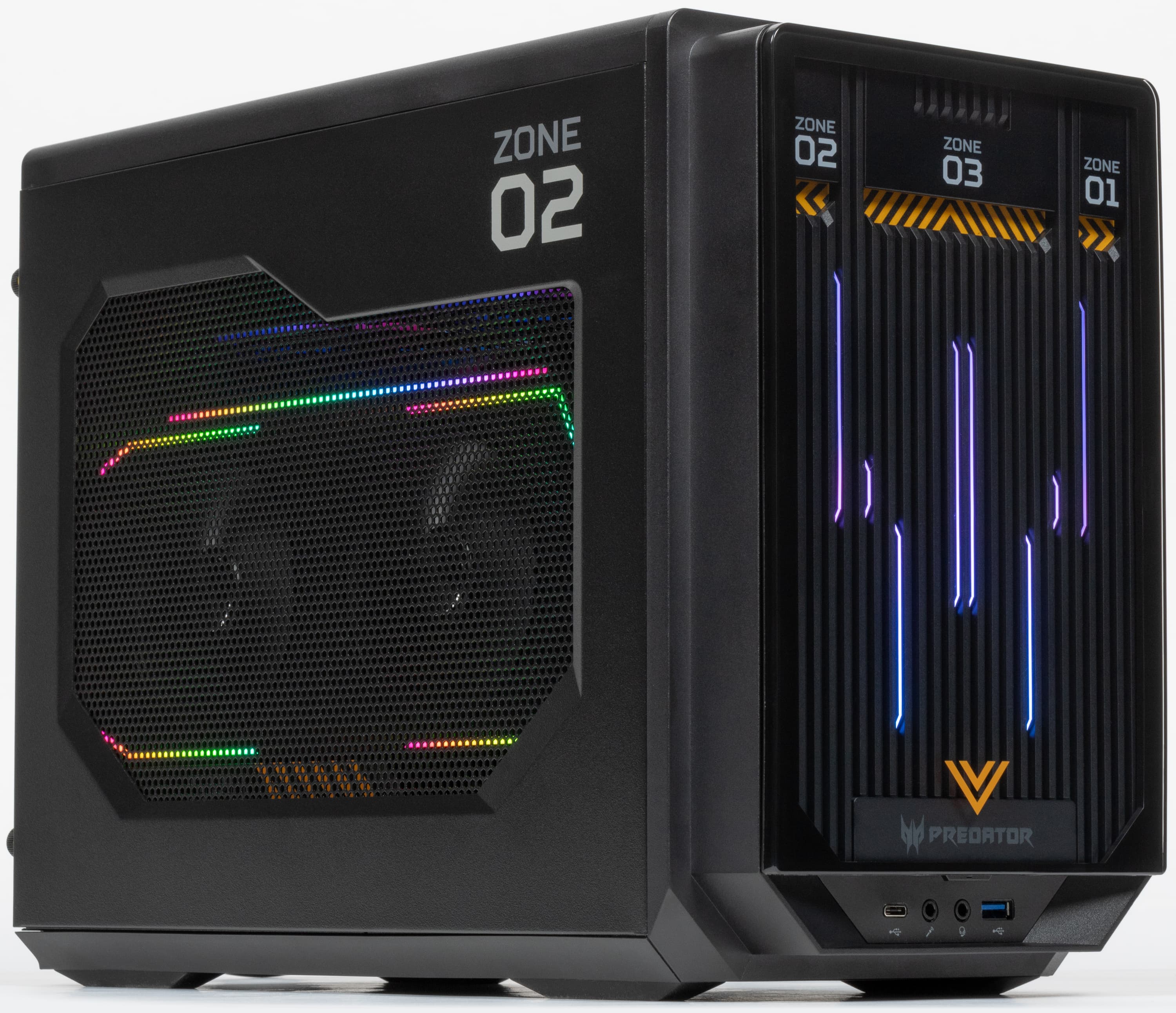 Естественно, производители компьютеров это учитывают. Особенно крупные — благо у них возможностей для придумывания чего-то эдакого намного больше, чем у небольших сборщиков, оперирующих лишь тем, что можно купить на открытом рынке. Топовые серии компьютеров составляют особенную гордость у всех, хотя и стоят в итоге соответственно: наш сегодняшний герой тянет без малого на полмиллиона рублей. Правда, это старшая конфигурация, а есть и более демократичная версия Orion X: стоит заменить Core i9 на Core i7, а GeForce RTX 4090 — на GeForce RTX 4080, как цена сразу снижается почти в полтора раза. Однако внимательное изучение ассортимента Acer показывает, что желающим сэкономить больше подходят серии Orion 7000, а то и Orion 5000. Predator Orion X нацелен в первую очередь на покупателей, не слишком склонных к компромиссам, и им наиболее интересна как раз топовая версия системы, где основные компоненты улучшать уже некуда, но упакованы они при этом в очень компактный и броский корпус.