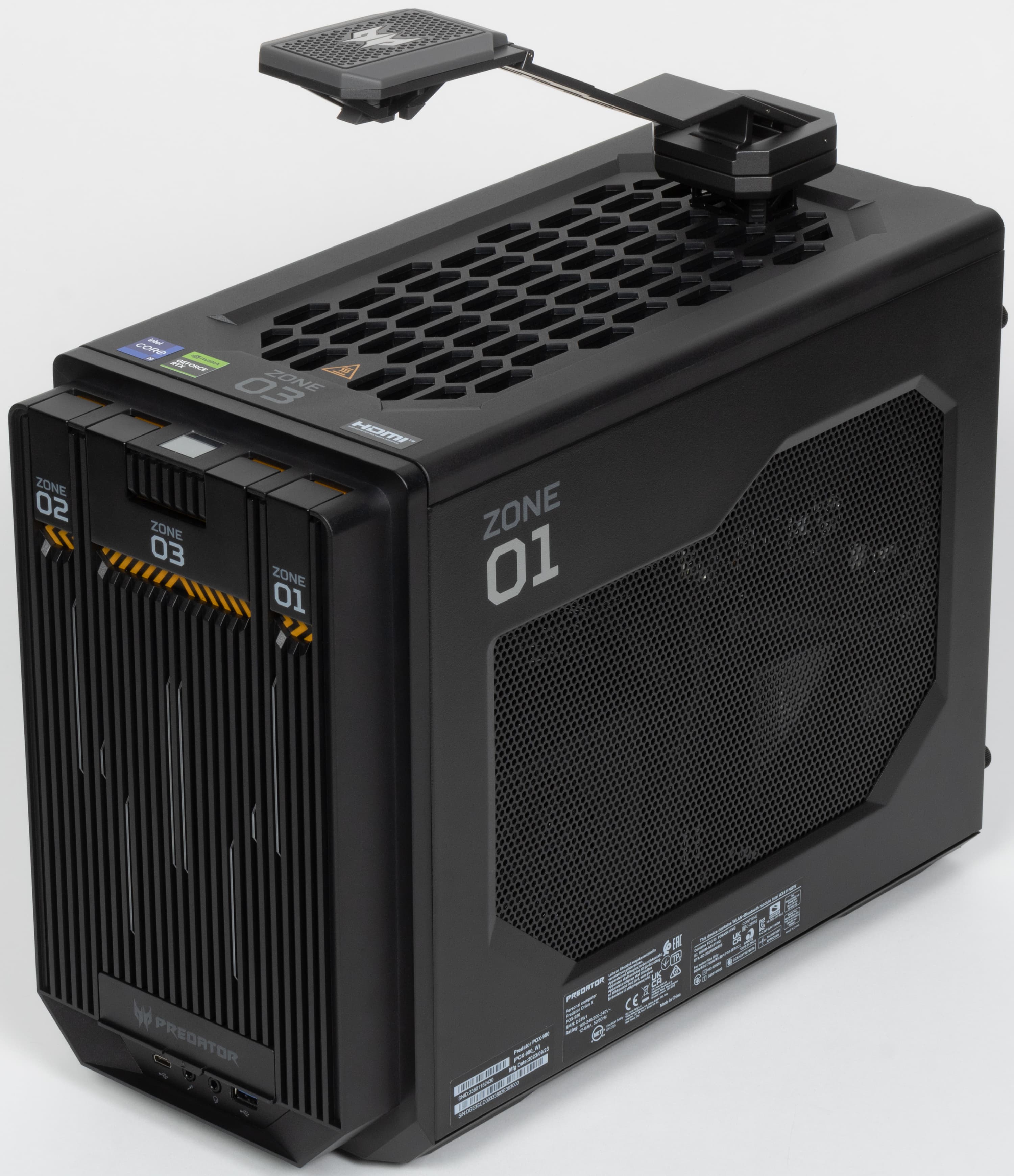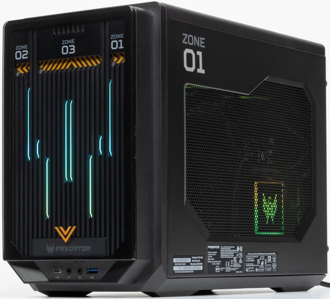 Лучше займемся более практически значимыми вопросами. Как мы уже упоминали, существует и более «народная» версия Orion X — с GeForce RTX 4080 и Core i7-13700KF. В данном случае процессор 14-го поколения уже не помешал бы, поскольку в Core i7-14700KF досыпали немножко «малых» ядер. Хотя принципиально это ничего не меняет. И, как тоже уже было сказано, «удешевленные» модификации Orion X в принципе менее интересны — они уже прямо конкурируют с «номерными» Orion, которые при этом, естественно, выглядят более привлекательными. С Orion 7000, например, мы тоже получаем систему жидкостного охлаждения процессора, док для внешнего SSD и т. п. Так что у Acer есть предложения на самый разный вкус и кошелек, и Orion X — для тех, кто хочет всего и сразу. На общем фоне он выделяется, пусть при этом и придется доплатить «лишние» тысяч 30 за дизайн — главное, что не только за эстетическую, но и за функциональную составляющую.