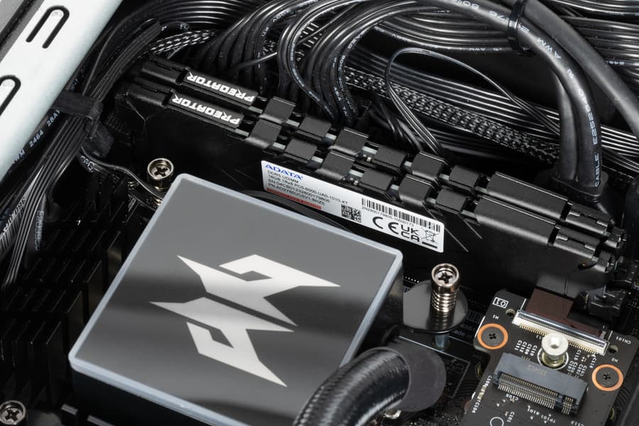 Если у кого завалялись старые SATA SSD или даже дорогие как память ноутбучные жесткие диски, систему хранения данных можно расширить и ими. Правда, для этого придется забираться аж за системную плату, в том числе снимать видеокарту. Потом надо подключить кабель к блоку питания (он модульный), пропихнув его в нужную позицию, и аналогично повозиться с интерфейсными кабелями. Да, это обратная сторона компактности. Благо для игровых компьютеров SATA-накопители всё менее актуальны: запас «устаревших» SSD у покупателя готовых компьютеров обычно отсутствует, а жесткие диски сгодятся разве что на роль файлопомойки — но в этом качестве имеет смысл использовать не ноутбучные винчестеры. В Orion X полноразмерные диски 3,5” в принципе не влезут, а вот в «номерных» сериях Orion для них есть 1-2 отсека, так что на роль бюджетного решения эти компьютеры лучше подходят не только из-за цены.
