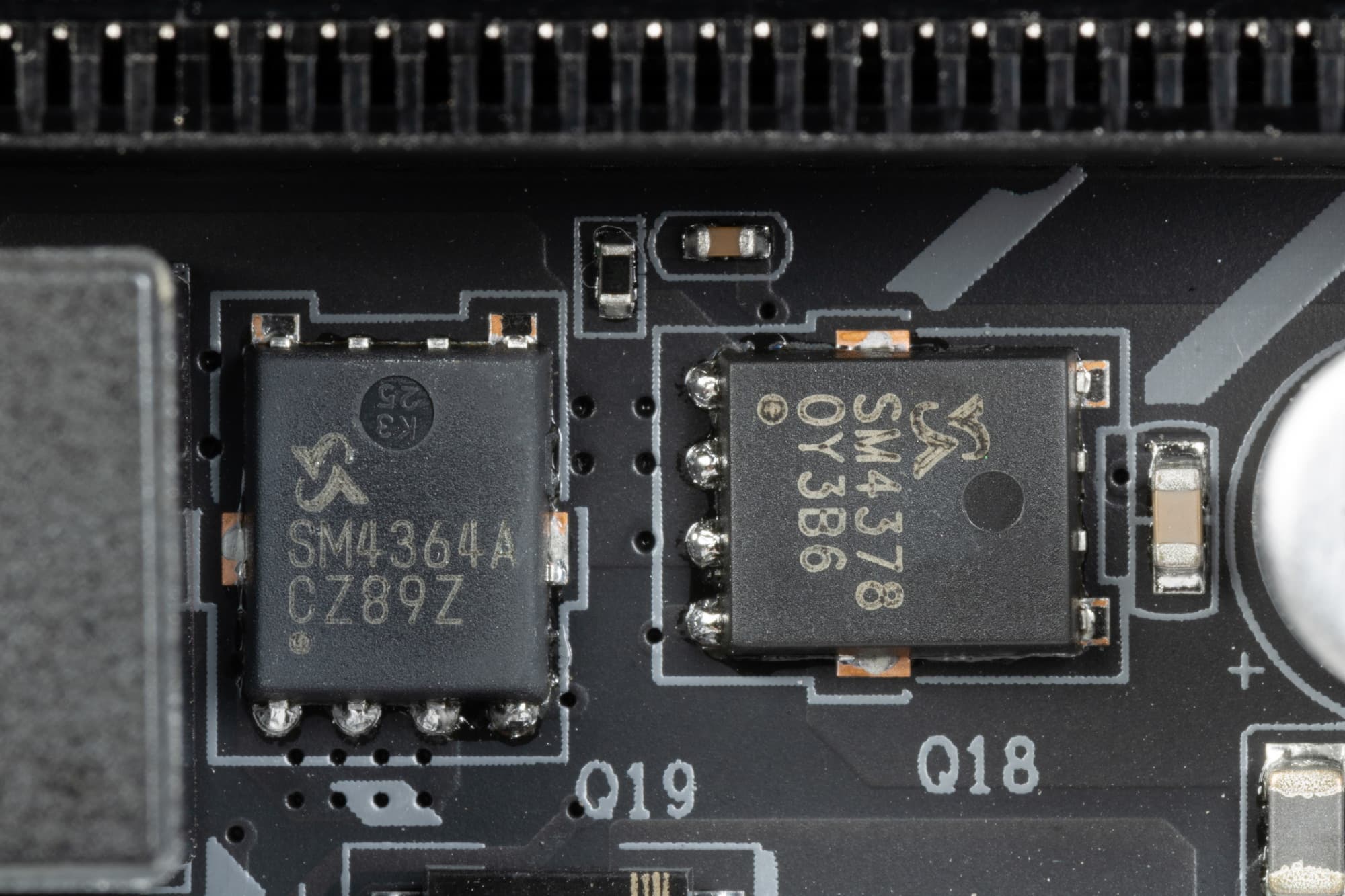 Питание VCCSA и слотов памяти DDR4 имеет намного более простую однофазную схему с наборами МОП-транзисторов SM4378/SM4364 от Sinopower.