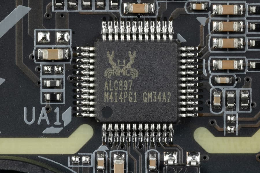 В данной плате звуком заведует устаревший и дешевый аудиокодек от Realtek ALC897.
