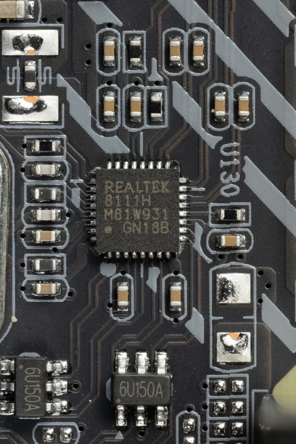 Материнская плата оснащена средствами связи очень скромно. Имеется Ethernet-контроллер Realtek RTL8111H, способный работать по стандарту 1 Гбит/с.