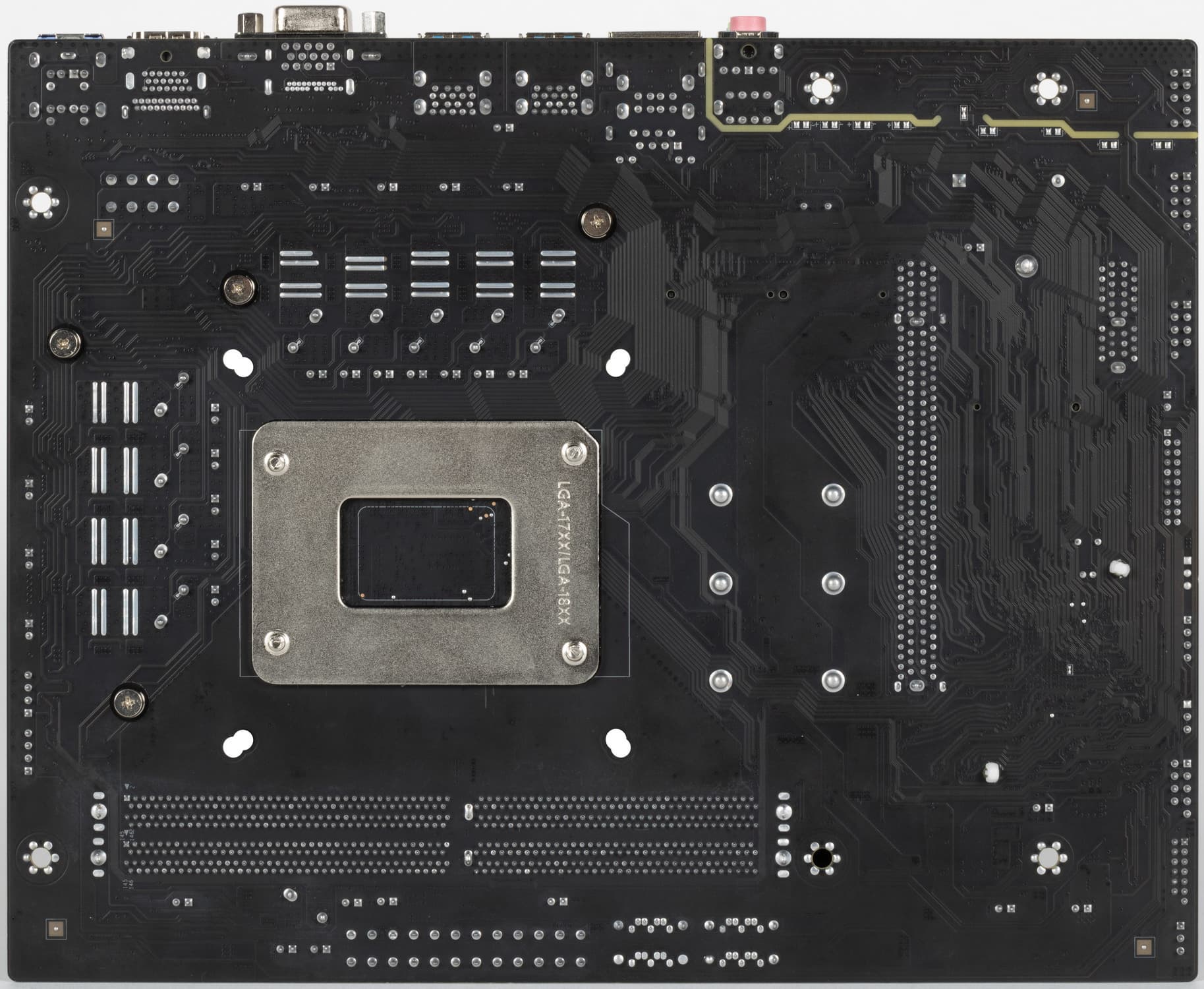 Оборотная сторона — практически пустая. Текстолит обработан хорошо: во всех точках пайки острые концы срезаны. Защитной пластины (бэкплейта) нет.