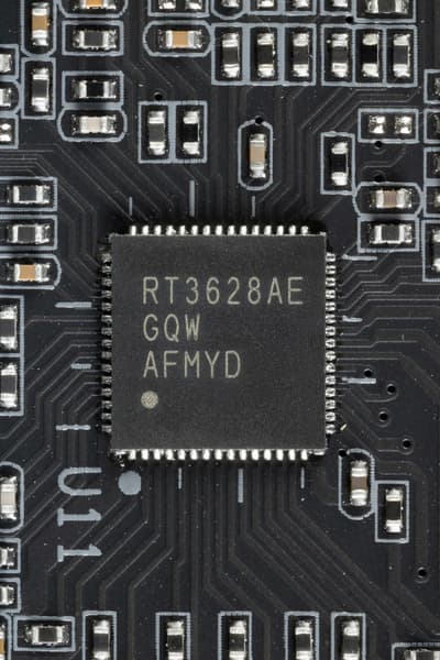 Управляет схемой питания VCore и iGPU ШИМ-контроллер RT3628 от Richtek.