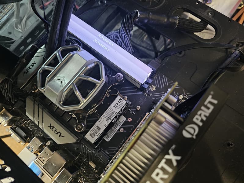 - 4 порта USB 2.0/1.1: все реализованы через B760 и представлены на задней панели 2 портами Type-A (черного цвета); еще 2 представлены внутренним разъемом на материнской плате на 2 порта.