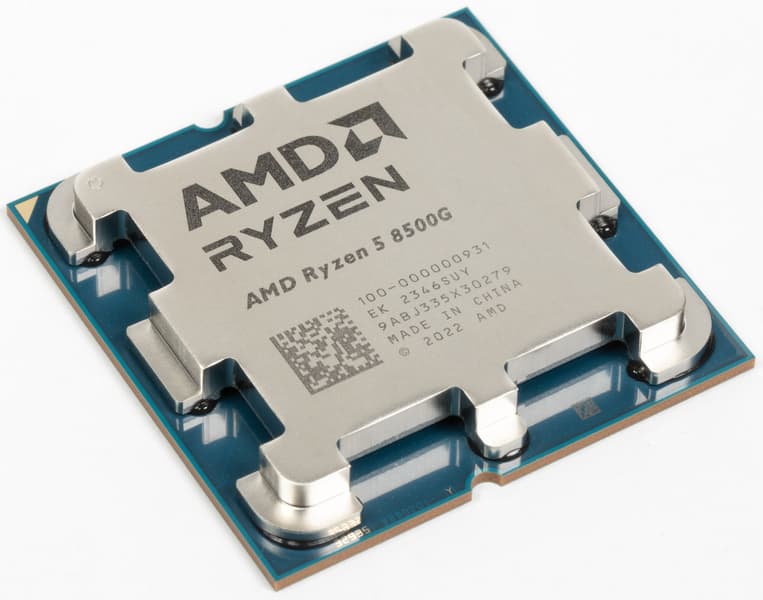 В случае младшей гибридной модели Ryzen 5 8500G, пара ядер Zen 4 имеет максимальную частоту 5,0 ГГц, а четыре ядра Zen 4c разгоняются до 3,7 ГГц. Ryzen 5 8500G основан на полной версии кристалла Phoenix 2 — в нем активны все шесть ядер. Объем L3-кэша равен 16 МБ, а встроенное видеоядро Radeon 740M использует все 4 блока CU архитектуры RDNA 3, работающих на частоте до 2,8 ГГц. Если сравнить эту модель со старшей Ryzen 5 8600G, близкой по многим характеристикам, то младшая 8500G отстает в основном по мощности интегрированной графики, которая вдвое медленнее. Старшая модель APU имеет те же шесть вычислительных ядер, но все они способны работать на высокой турбо-частоте, а у Ryzen 5 8500G на высокой частоте будут работать лишь два ядра. Цена Ryzen 5 8500G на момент выпуска была установлена на уровне $180, и среди главных конкурентов рассматриваемого гибридного процессора — несколько моделей Intel Core i3 разных поколений, а также не самые современные младшие модели Core i5.