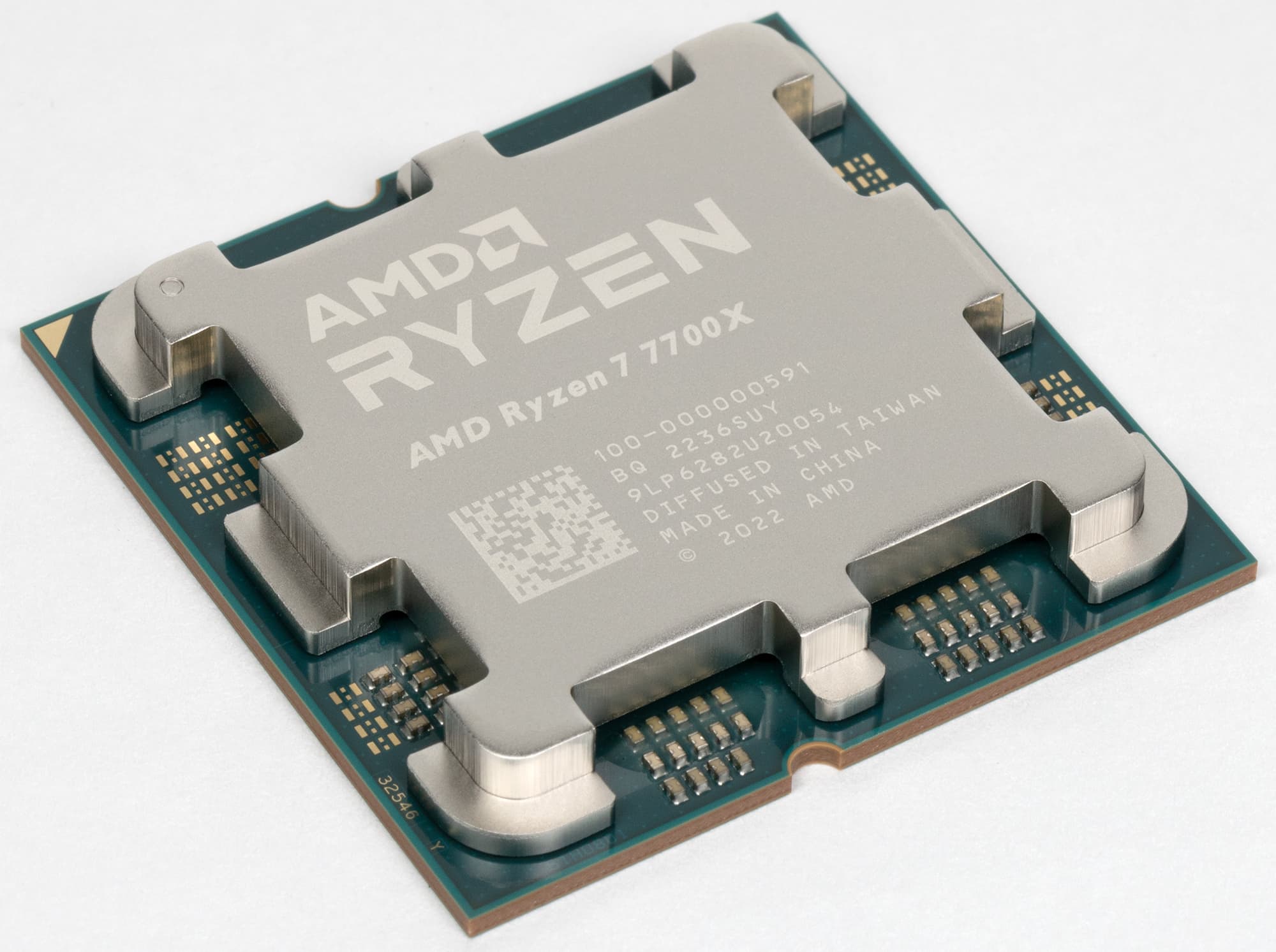 Процессор модели Ryzen 7 7700X предназначен для покупателей, ориентирующихся на средний ценовой сегмент. Он имеет восемь вычислительных ядер, работающих на тактовой частоте от 4,5 до 5,4 ГГц. Этот процессор является последователем дела сразу двух моделей из предыдущего поколения: Ryzen 7 5700X и 5800X, которые также приведены в таблице ниже. Наличие лишь восьми активных ядер позволяет использовать только один вычислительный кристалл CCD, и L3-кэш также имеет половину объема от топовой модели — 32 МБ. Предел энергопотребления процессора установлен на уровне 105 Вт — как у топовых моделей предыдущего поколения. Турбо-частота у новинки на 700 МГц выше, чем у Ryzen 7 5800X, и вместе с улучшениями архитектуры это позволяет рассчитывать на приличный рост производительности.