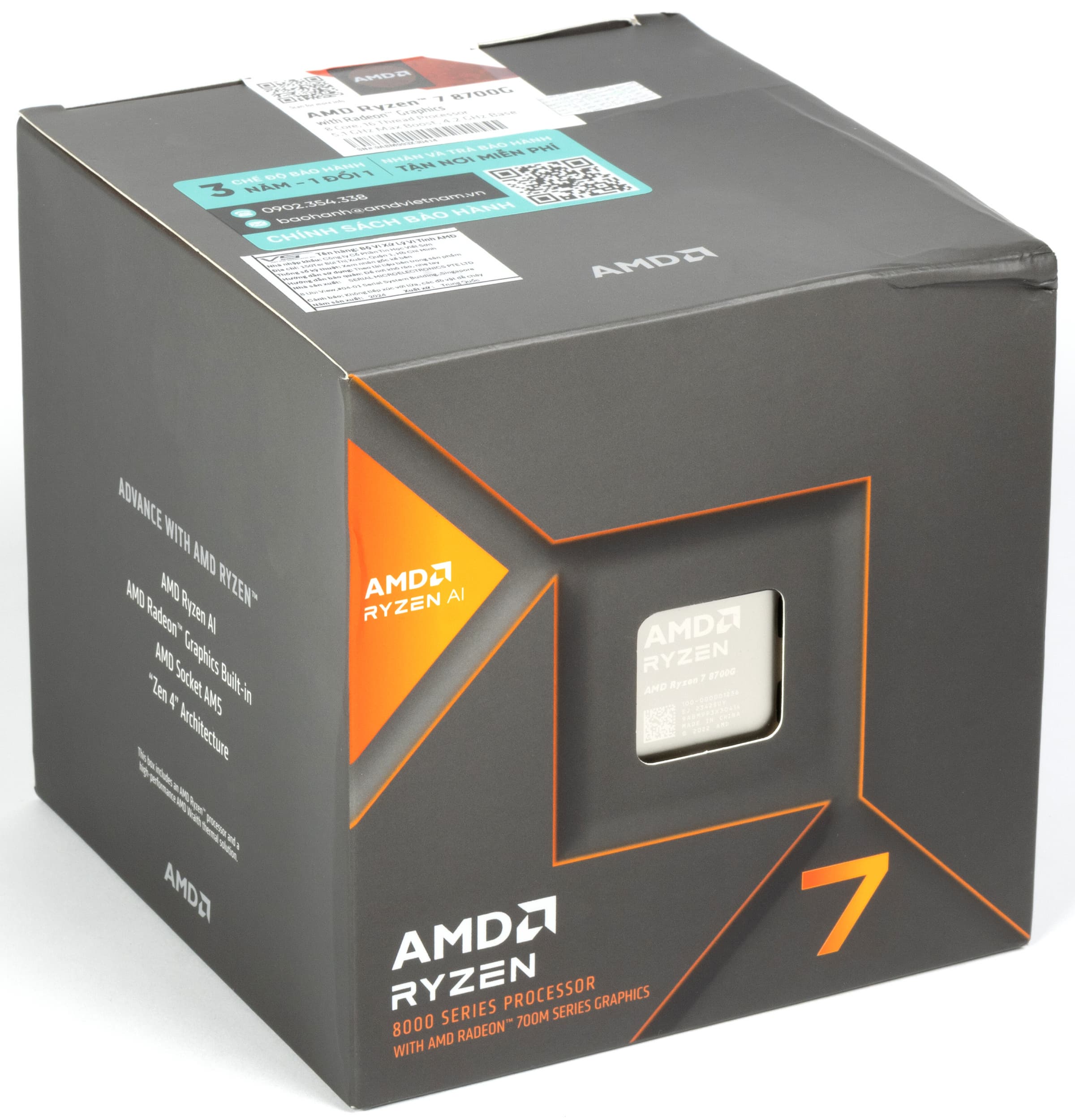 Возглавляет семейство модель Ryzen 7 8700G — это восьмиядерный APU на базе ядер Zen 4, который поддерживает одновременное исполнение 16 потоков благодаря технологии многопоточности SMT. Процессор поддерживает аппаратную виртуализацию, а также наборы инструкций AVX, AVX2 и AVX-512, что полностью соответствует возможностям настольных процессоров серии Ryzen 7000, расширяет совместимость APU с программным обеспечением, повышает производительность и увеличивает эффективность.