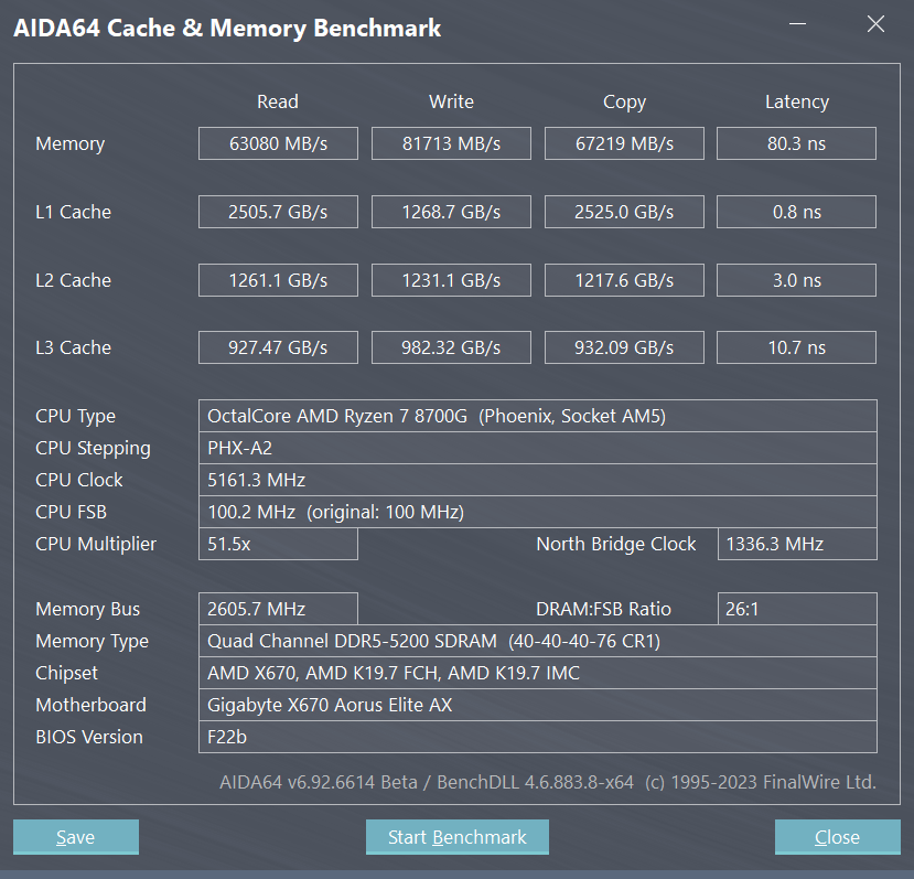 | Ryzen 7 8700G | 63080 | 81713 | 67219 |