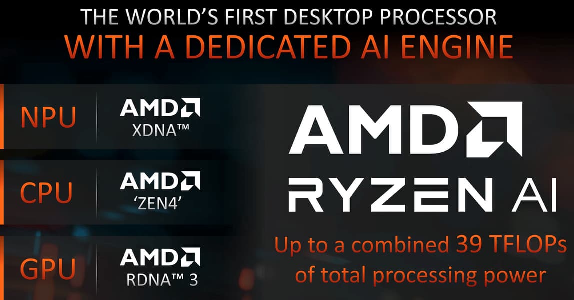 NPU ориентирован не на высокую вычислительную производительность, а на энергоэффективность, и он куда лучше подходит для ноутбуков и недорогих настольных ПК, ведь в системах с дискретной графикой именно GPU предлагает гораздо более высокую производительность в ИИ-вычислениях. Блок ускорения ИИ в Ryzen 7 8700G и Ryzen 5 8600G работает на частоте 1,6 ГГц, что выше, чем в мобильной серии Ryzen 7040, но обеспечивает примерно такую же производительность (порядка 16 TOPS для INT8), как и мобильные чипы. В целом же, по данным AMD, общая совокупная производительность CPU, GPU и NPU в таких задачах составляет 39 TOPS.