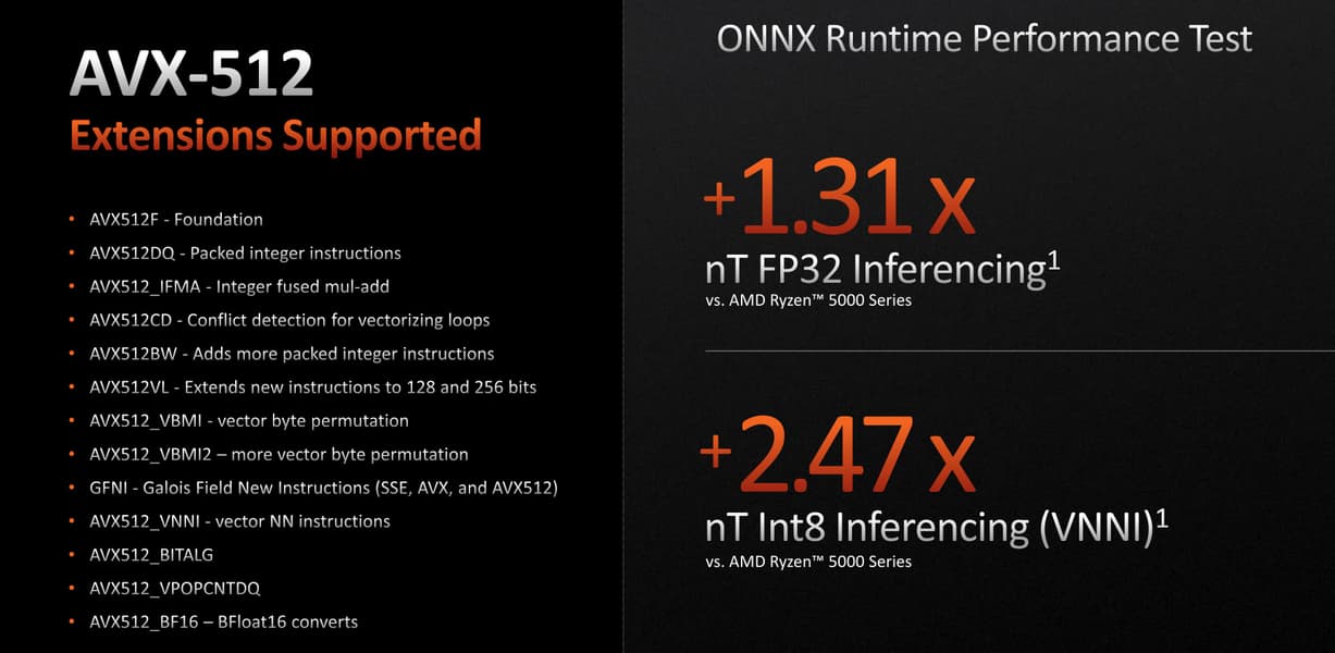 Хорошо, 15% общего прироста производительности получилось от тактовой частоты, а за счет чего образовались дополнительные 13% в темпе исполнения инструкций? Прирост IPC в этот раз не был таким большим, как в случае с Zen 3 и Zen 2, но это понятно — больше внимания было уделено платформе, а усовершенствование микроархитектуры оставлено на Zen 5. Но темп исполнения все равно вырос на 13% в нескольких тестах AMD, даже без масштабной переделки исполнительных блоков, лишь с небольшими улучшениями.