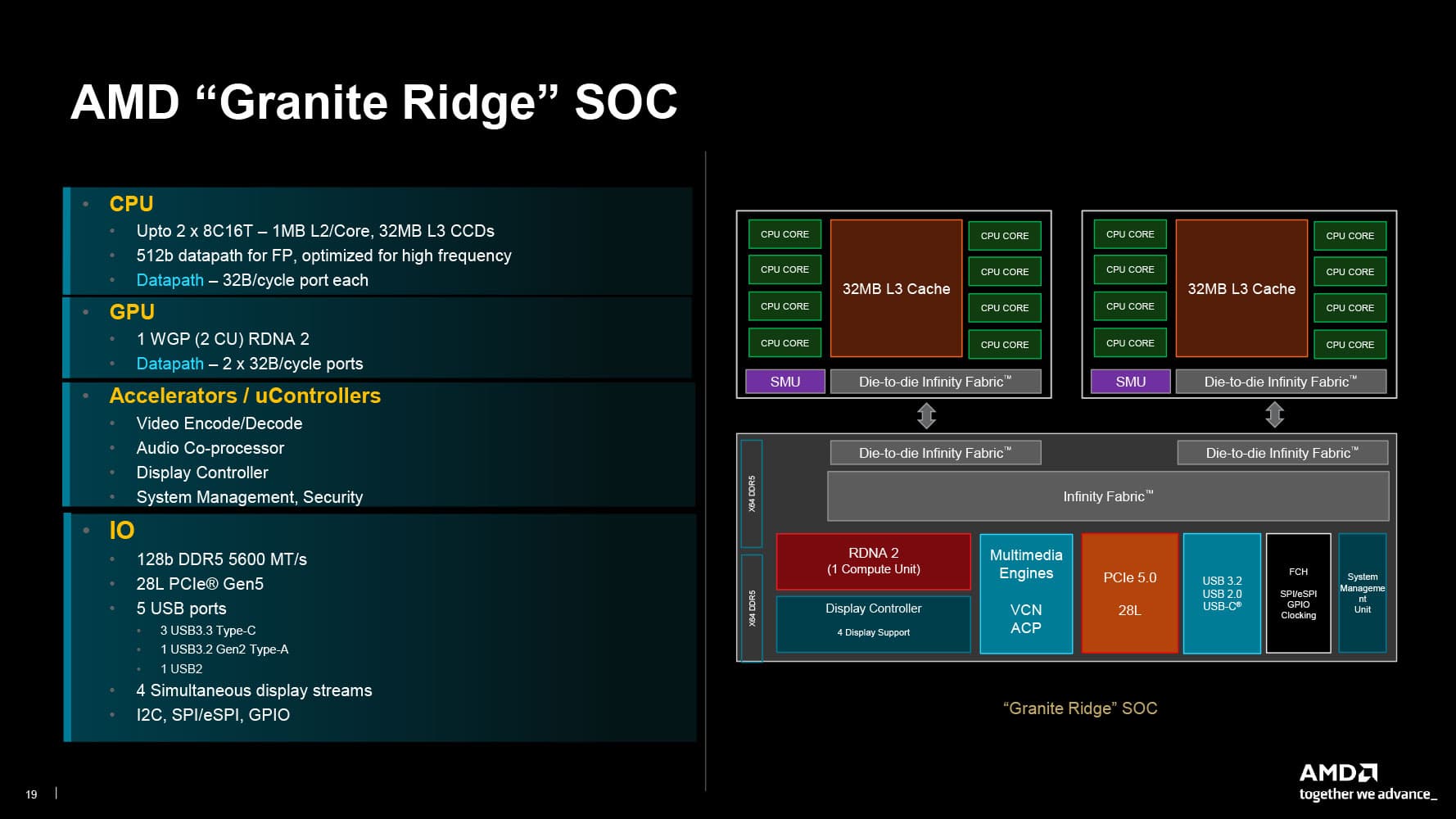 Серия процессоров AMD Ryzen 9000 основана на новой микроархитектуре Zen 5, которая улучшила производительность на такт и обеспечивает лучшую энергоэффективность, при этом оставаясь совместимой со всеми ранее выпущенными системными платами с Socket AM5. Ключевые особенности новой архитектуры включают двухконвейерную выборку, сочетающуюся с улучшенным предсказателем ветвлений, а сниженные задержки кэша инструкций и оптимизация его пропускной способности обеспечивают требуемый поток данных и более высокую скорость их обработки. В Zen 5 были улучшены и расширены возможности целочисленного выполнения, новое ядро отличается более продвинутой диспетчеризацией, повышенной пропускной способностью подсистемы кэширования, также были улучшены блоки предварительной выборки данных. На более высоком уровне между Zen 4 и Zen 5 особых изменений нет. Хотя кристалл ввода-вывода IOD в новых процессорах остался таким же, новые настольные процессоры с кодовым наименованием «Granite Ridge» базируются на новых кристаллах CCD — они имеют по восемь ядер и 32 МБ L3-кэша, но их вычислительные ядра стали сложнее, а изготовлены кристаллы по более совершенному техпроцессу 4 нм.