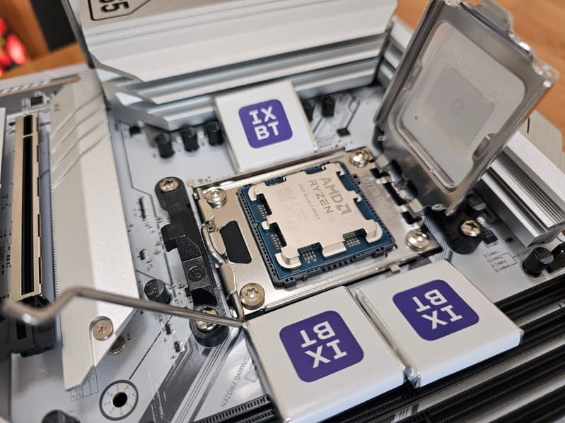 Что касается остальных возможностей процессора и платформы, то интегрированное графическое ядро Ryzen 9 9950X не изменилось по сравнению с предыдущей серией, так как AMD решила использовать тот же кристалл ввода-вывода. Производительности встроенного GPU для неигровых задач вполне достаточно — офисные приложения и воспроизведение роликов работают отлично, а многим большего и не нужно. В играх производительность идентична производительности графики в Ryzen 7000, и эти решения не предназначены для серьезных игр, но они быстрее того, что предлагает Intel, и лучше совместимы с играми. AMD анонсировала новую серию чипсетов 800, и системные платы уже вышли, но по сути, единственным их нововведением стала поддержка USB 4 и Wi-Fi 7, которая реализована при помощи сторонних контроллеров и не является особенностью именно новых чипсетов. А остальные новые возможности, включая разгон и оптимизированную поддержку памяти DDR5, появятся и в существующих AM5-платах при помощи обновления BIOS. Это можно считать отличной новостью — AMD продолжает поддерживать Socket AM5 аж до 2027 года.