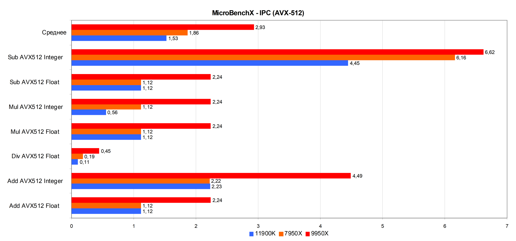 Блок для работы с операциями с плавающей запятой имеет три планировщика (в Zen 4 их было два), исполнительные устройства FP-блока научились работе с 512-битными векторными регистрами — AVX512-инструкции обрабатываются процессором за один проход, а не разделяются на две 256-битные команды для отправки на исполнительные устройства.