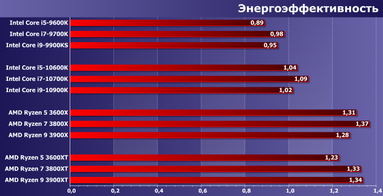 Но, в общем и целом, все равно получаются колебания в диапазоне 1,2-1,4 «балла на Вт», что где-то на 20% лучше, чем на LGA1200 — и на 30%, чем у LGA1151 «Second Edition». Чего и достаточно. Тем более, опять же, «монолитные» 7 нм APU должны стать еще лучше.