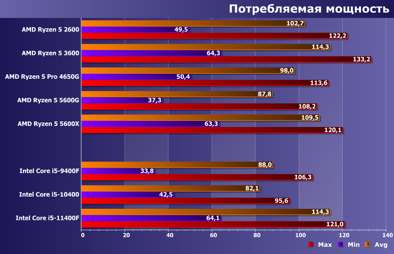 ...поскольку экономичных Rocket Lake тоже нет. На первый взгляд таким кажется Core i5-11400F, но только потому, что его железной рукой загоняли в те рамки, в которых предшественникам было попросту просторно. Загнали — попутно заставив процессор работать медленнее, чем он мог бы. И все равно лишних 20—30 Вт набежало. А если попробовать снять ограничения, то и этот малыш улетает под те же 200 Вт, что и старшие модели линейки. У AMD же таких «особенностей» нет. И вообще — Zen3 при том же техпроцессе стал (во всех видах) экономичнее Zen2. А монолитные APU потребляют меньше энергии, нежели «чистые» процессоры.